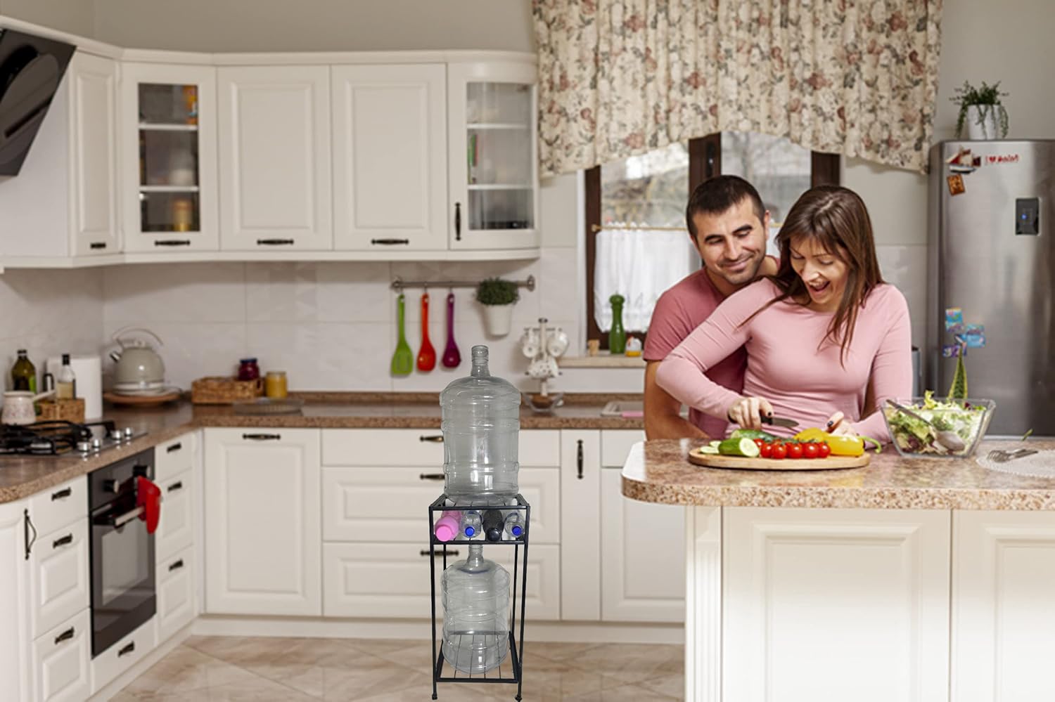 3-Tier Dispenser Stand: Space-saving design holds 2 water bottle (20L jar), each tier carries one Bottle. This slim and modern design takes up very little space in your Home/Office.