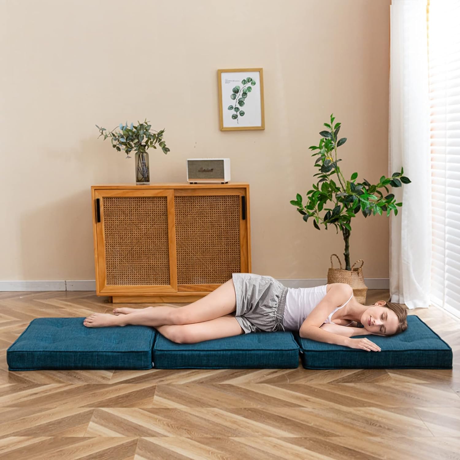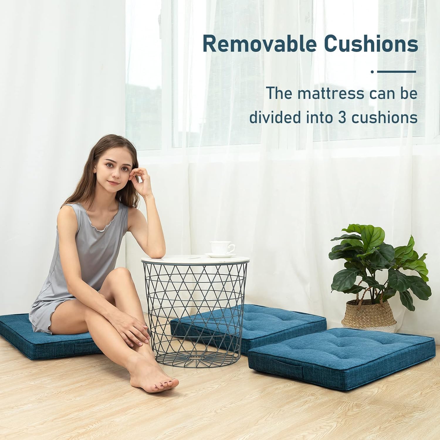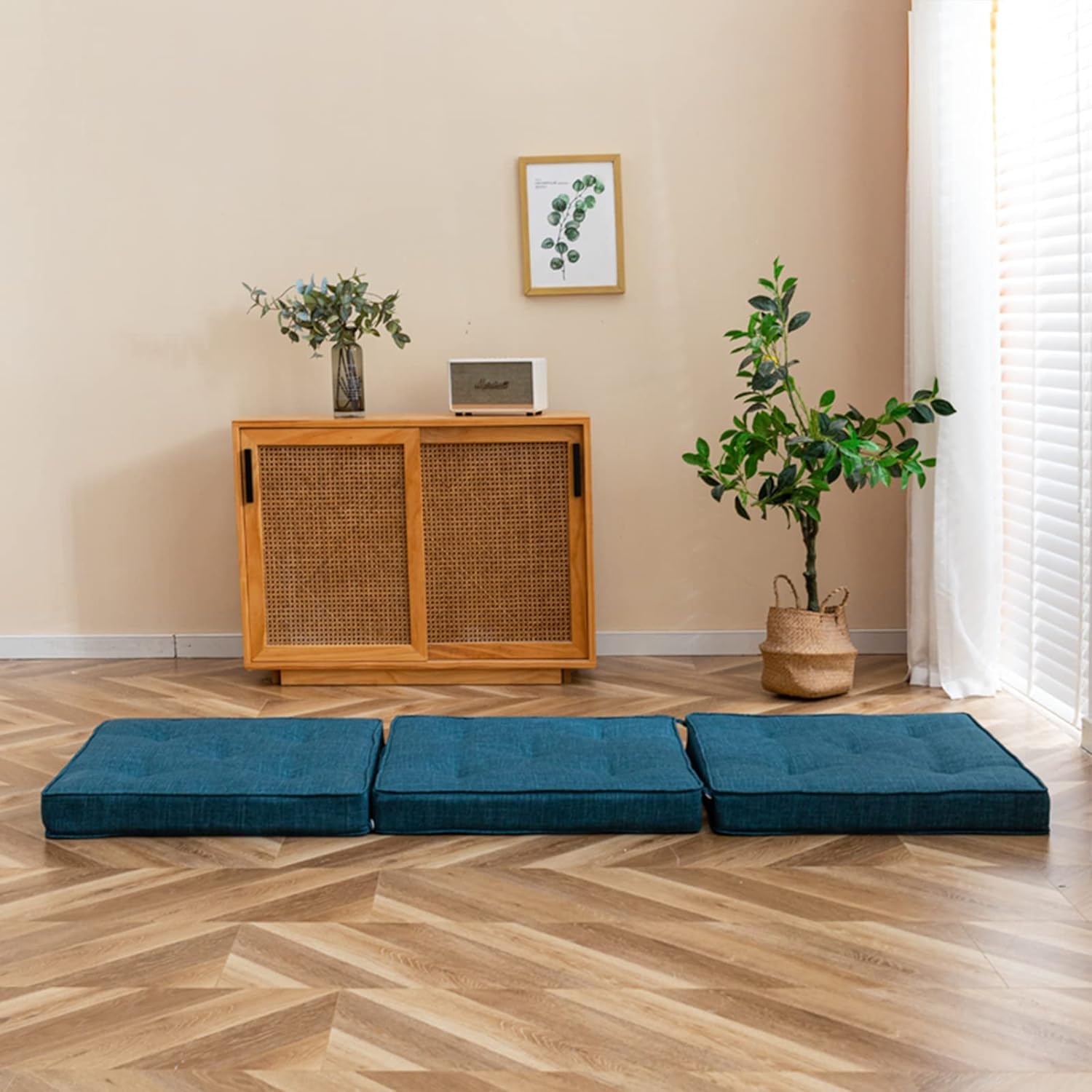 Durable and Adjustable: The mattress features a durable cover with Jute-fabric and firm-sewing, safeguarding the interior foam. Comprising three cushions, it can be freely spliced and disassembled using convenient buttons.