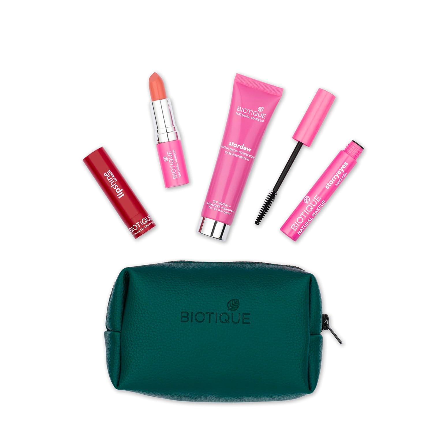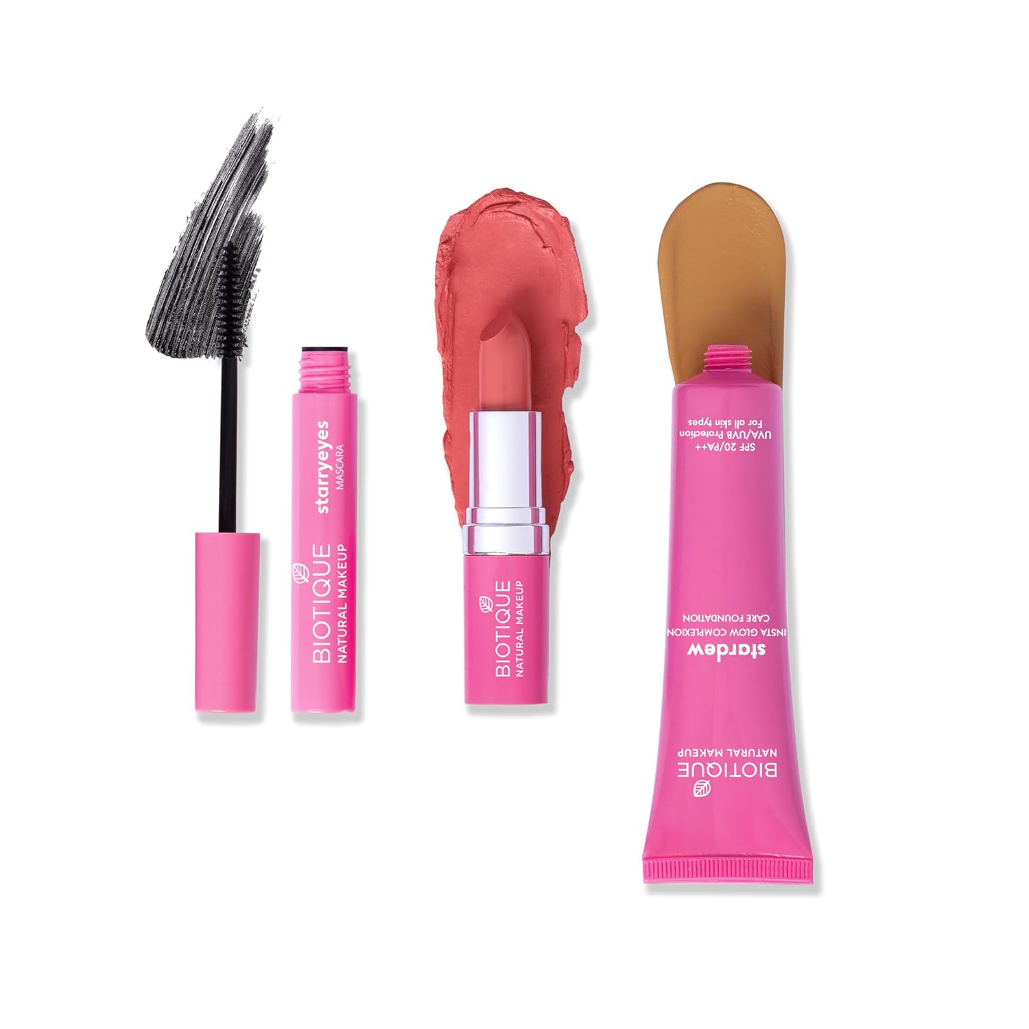 Biotique Natural Makeup Magikisses Lip Balm SPF 20-Berry Crush Biotique Natural Makeup Starryeyes Mascara-Ebony Black Biotique Natural Makeup Starkissed Moist Matte Lipstick-Island Kiss Biotique Natural Makeup Stardew Insta Glow Complexion Care Foundation SPF 20-Vanilla