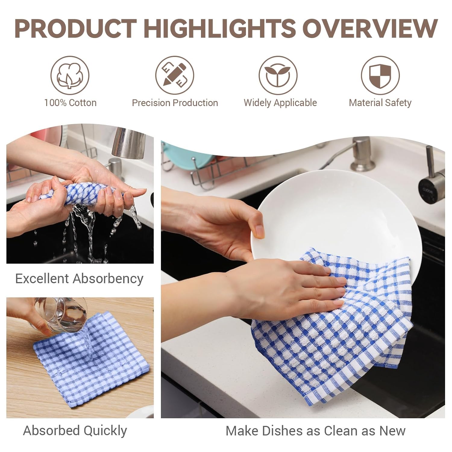 VALUE SET – A set of 12 cotton dish towels, measures 12″ x 12″, four well-matched colors, easy to distinguish between different uses, and perfectly match your home kitchen design. Reusable and environmentally friendly, it is a good helper to replace disposable paper towels