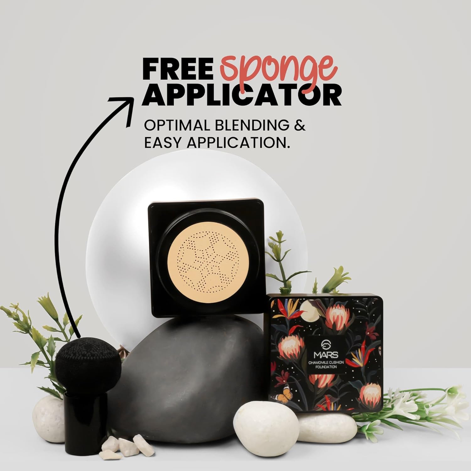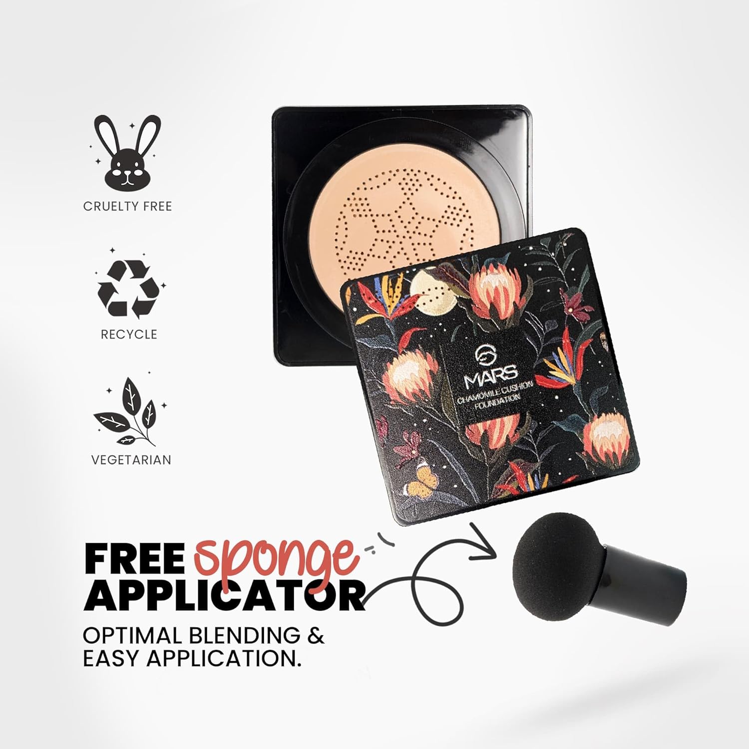 MARS Chamomile Cushion Foundation with Applicator | Dewy Finish & Easy to Blend Nourishing Foundation for Face Makeup (20G) (Shade-01),Powder