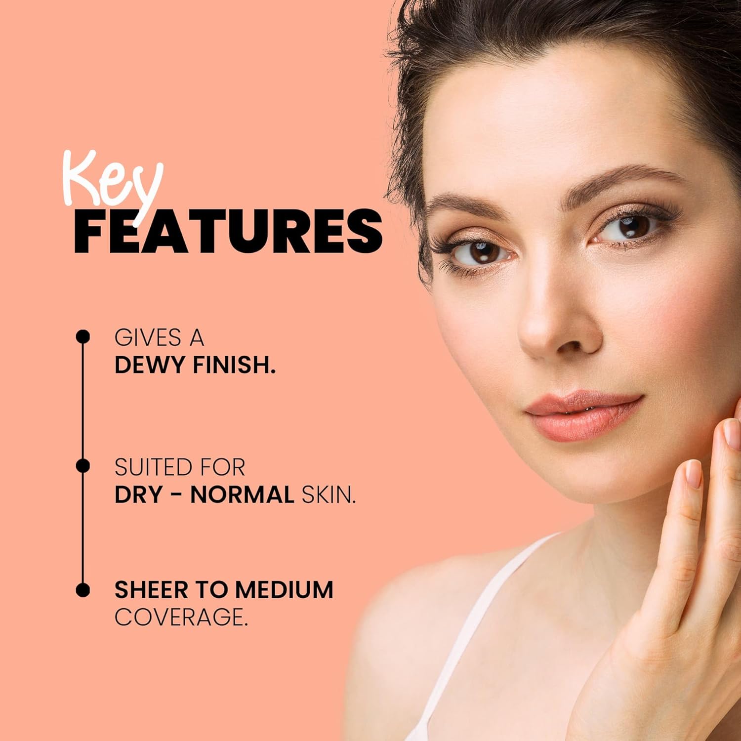 SHEER TO MEDIUM NATURAL COVERAGE- The foundation provides a sheer to medium coverage that evens out the skin tone without looking heavy or cakey. The lightweight formula feels comfortable on the skin, allowing it to breathe while providing a natural-looking finish.