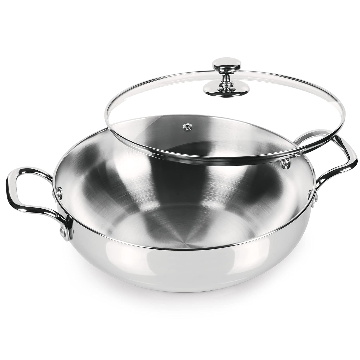 Introducing Milton Pro Cook Stainless Steel Sandwich Bottom Kadhai Pan with Glass Lid. Encapsulated stainless steel base with thick aluminium core inside for even distribution of heat and faster cooking compared to normal stainless steel cookware. Sandwich Bottom Kadhai is suitable for making your favourite vegetables, meals, gravies, fry papadums, samosas, cook curries and much more. Superior hygienic stainless steel Kadhai having glossy mirror finish outside and matt finish inside for rich premium feeling. Firmly riveted stainless steel handle with two rivets for long lasting usage. Specially designed rolled edge at top for drip less pouring. Toughened glass lid with air event allows you to see the beverage while cooking, air vent allows excess steam to release while cooking. It is Dishwasher safe for ease of cleaning and maintaining. Thick induction base which provides flexibility of using the Kadhai on gas stove, induction, hot plate and also evenly heats your beverage. 2 years manufacturing defect warranty on product.