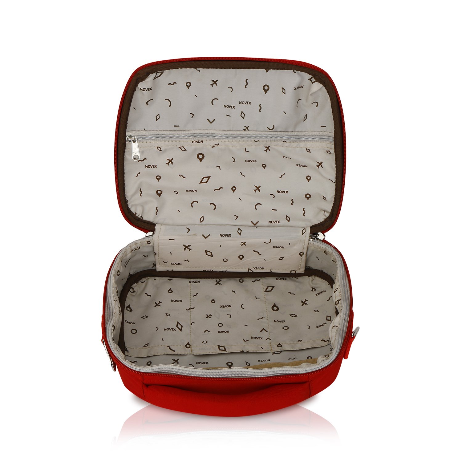 The NOVEX Polyester Vanity Box for Women is a stylish and practical solution for organizing your makeup and beauty essentials. Made from durable polyester, this cosmetic storage kit is designed to keep your beauty items secure and easily accessible. Featuring adjustable dividers, you can customize the interior layout to perfectly fit your brushes, lipsticks, foundations, and other makeup products. This versatile vanity box also functions as a toiletry bag, offering ample space to organize skincare items, toiletries, and personal care products for both home and travel use. Its compact yet spacious design ensures you can store all your essentials without clutter, while the vibrant red color adds a bold and eye-catching touch. Ideal for those on the go, the NOVEX Polyester Vanity Box is a multifunctional, durable, and stylish organizer that makes beauty storage convenient and efficient wherever you are.