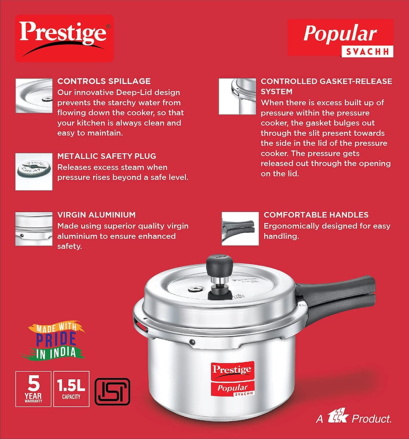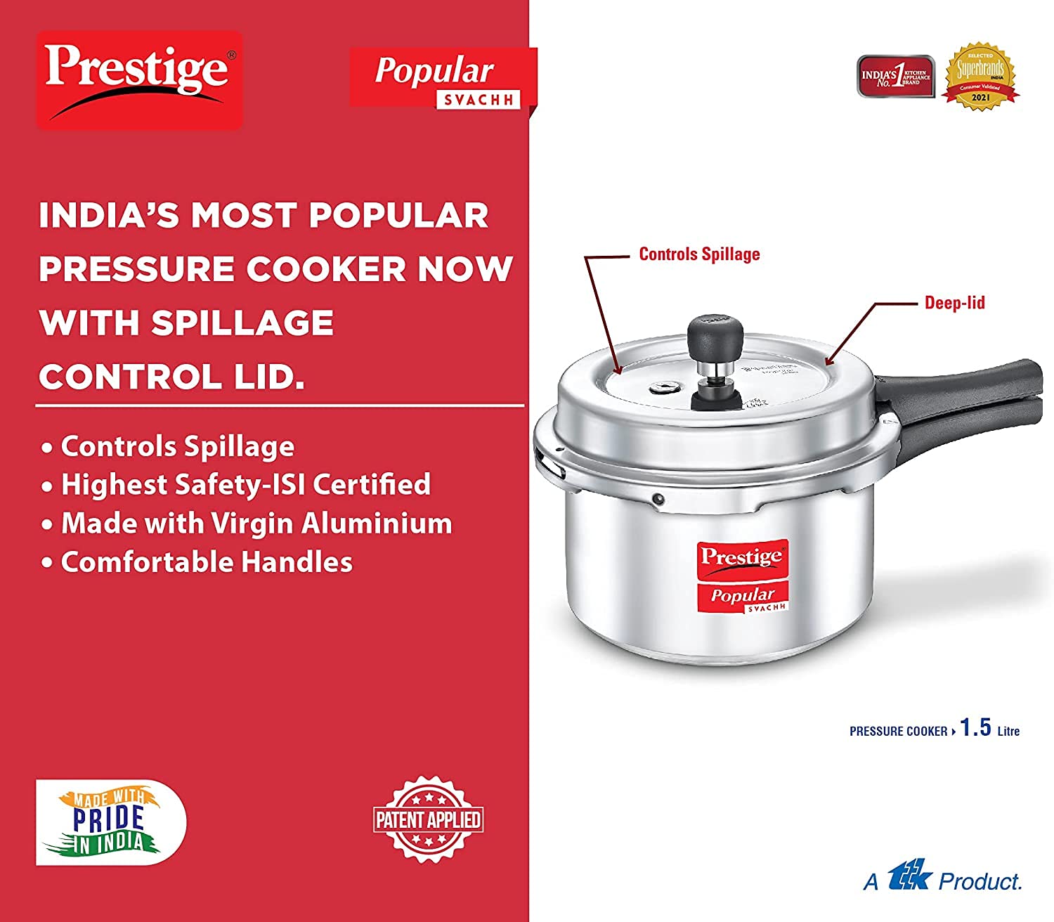 Controls Spillage : Our Innovative deep lid design prevents the strahy water from the flowing down the cooker, so that your kitchen is always clean and easy to maintain.