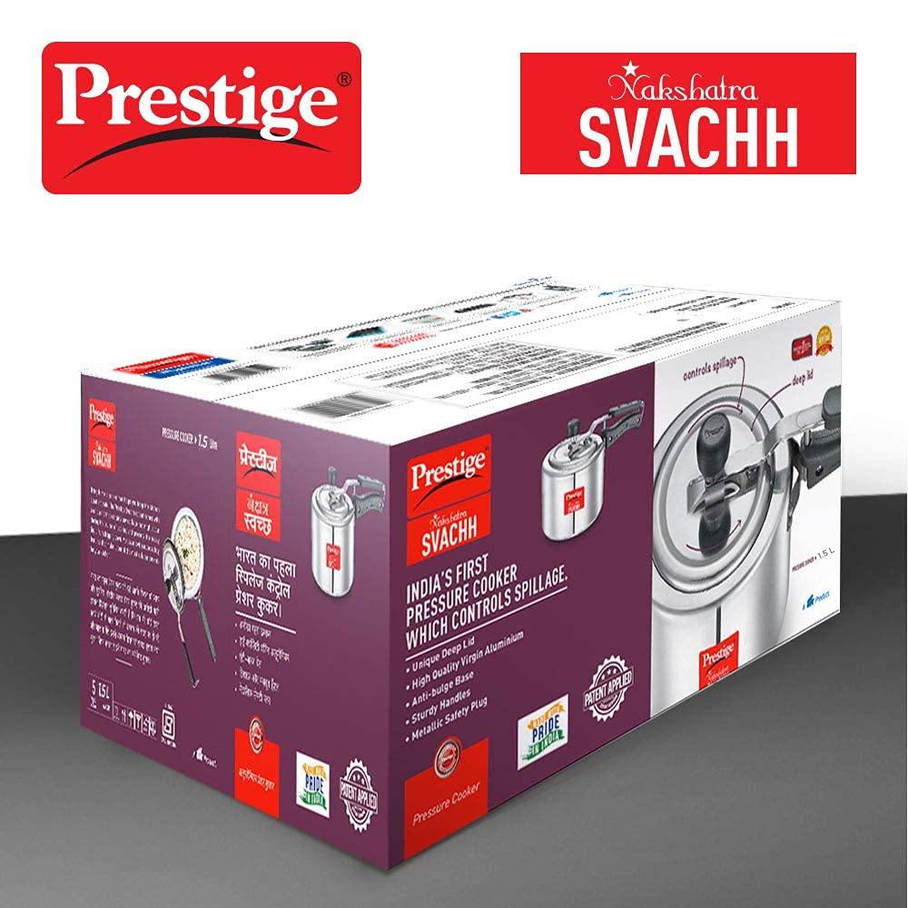 Package Contents: 1 unit of 1.5 litre Aluminium svachh pressure cooker