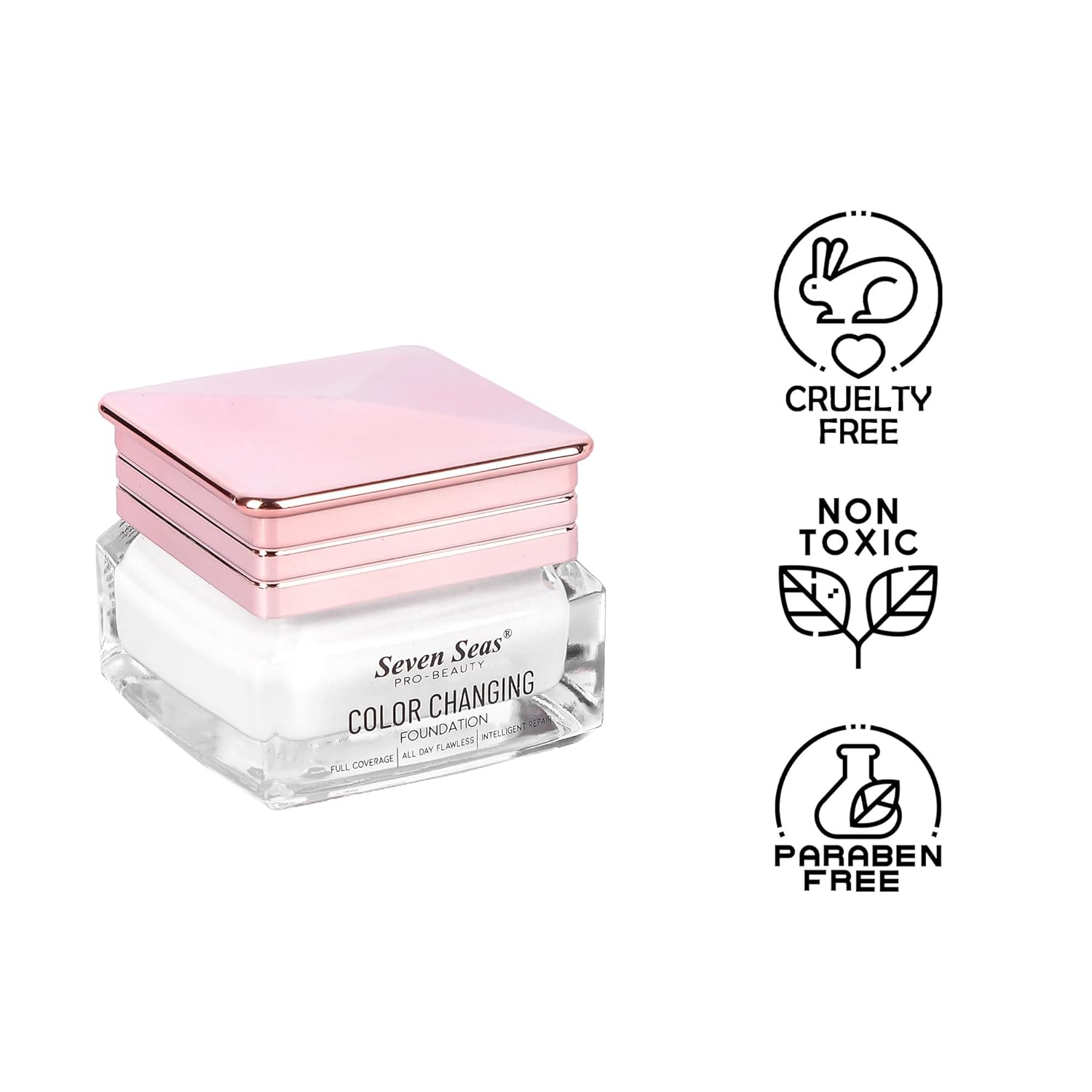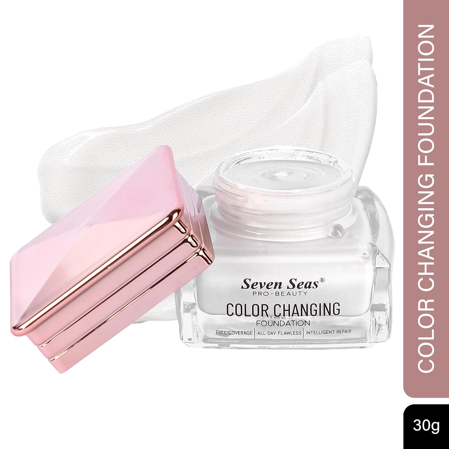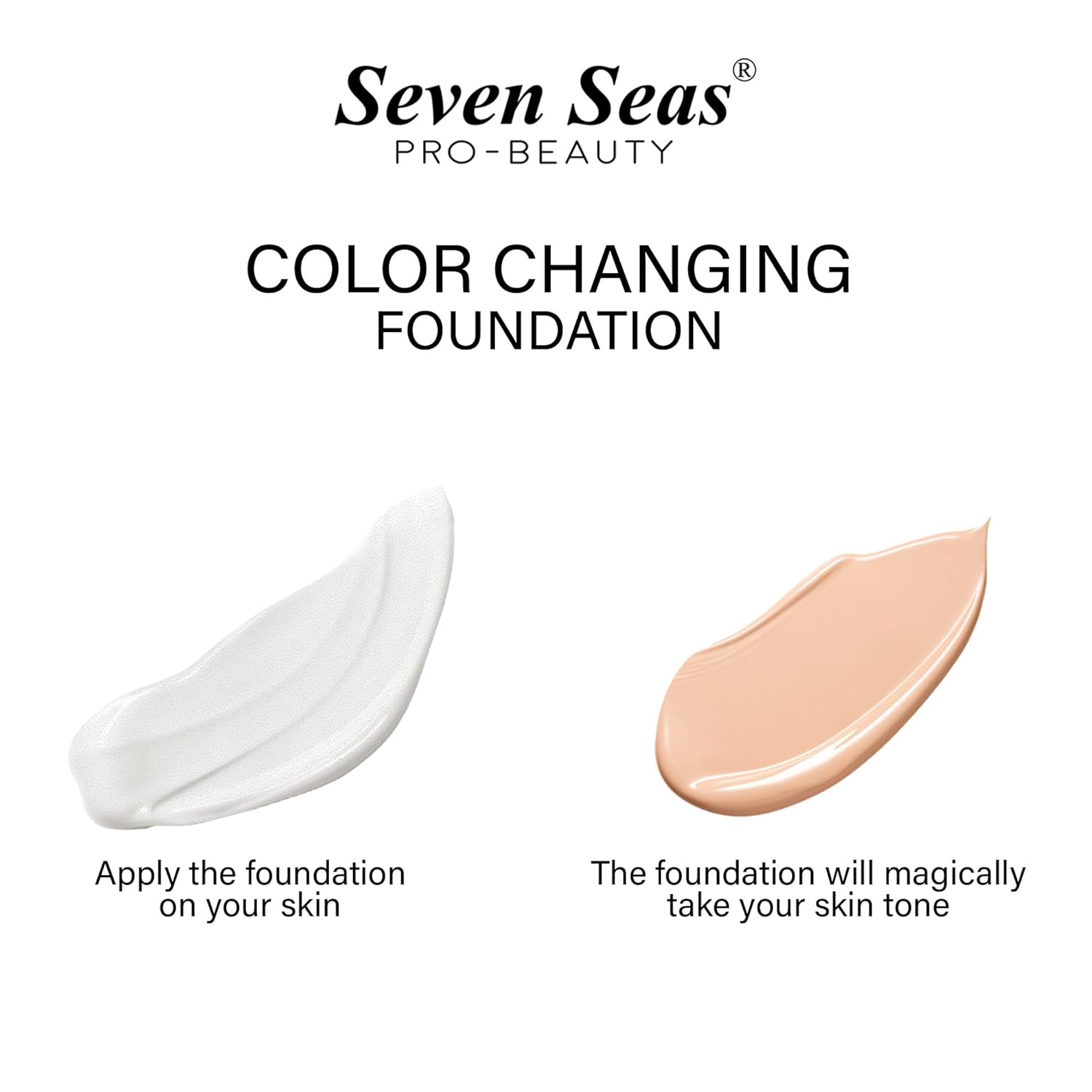 Seven Seas Color Changing Foundation – 30G | Flawless Color Changing Foundation With Satin Finish | Long Lasting Waterproof Foundation For Face Makeup, Full Coverage, Cream, All