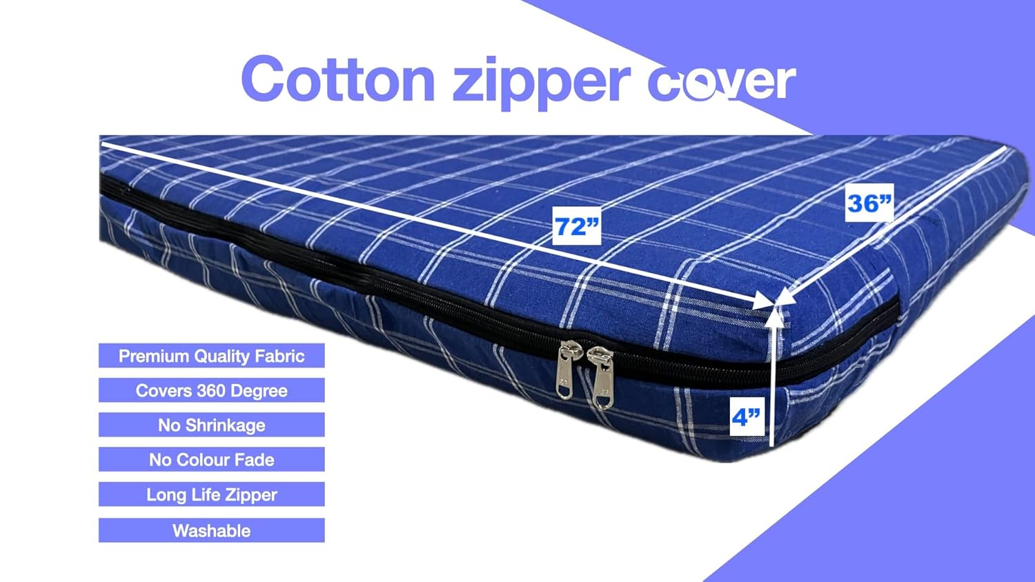 Cotton mattress covers made of heavy , non shrinkable fabric which Makes your mattresses more comfortable. It covers all the sides of mattress. Zip across length makes it Easy to remove and cover .Heavy fabric, Superior quality chain with pair of metal locks , Inside stitches interlocking makes it lifelong .To make it life long ,These covers are made one inch bigger on both sides than the size mentioned . Same size of covers can be ordered for same size of mattresses. For size customization please contact seller.Pack of 1